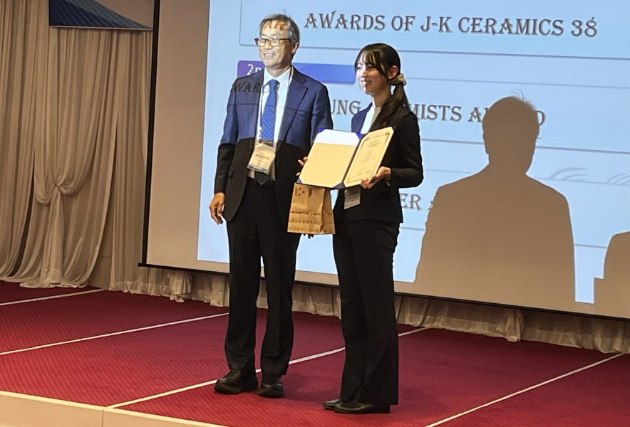 修士1年生の森井 悠未さんが、韓国の済州島でのThe 39th International Korea – Japan Seminar on CeramicsでSynthesis of iron nitride with high saturation magnetization by mechanical alloyingでのポスター発表を行い、最優秀ポスター賞を受賞しました。おめでとうございます!
